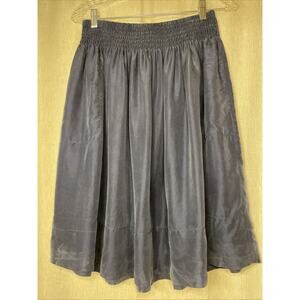 Talbots Small 100% Silk Midi Smocked Waist Navy Skirt-Preppy/Capsule/Has Pockets