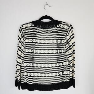 Talbots Small Hand Knit Crochet Pull Over Cardigan Sweater Black White Striped