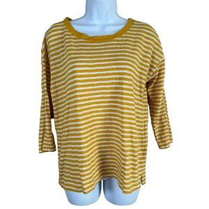 Talbots Small Womens Top Yellow White 3/4 Sleeve Striped Cotton Round Neck