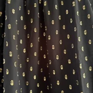 Talbots Smocked Blouse Black Metallic Clip Dot Keyhole Back Long Sleeve Sz M