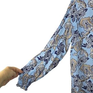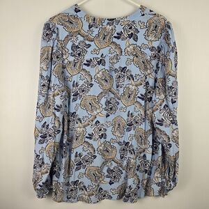 Talbots Smocked Cuff Popver -Medallion Rose V-Neck Long Sleeve Blouse Size XL