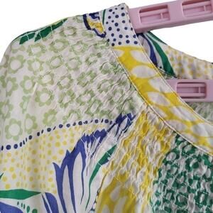 Talbots Smocked Floral Long Sleeve Peasant Top 0X Butter Yellow Crochet Cottage