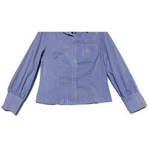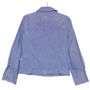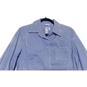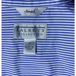 Talbots Snap-Front Top Women's Size 12 Blue With White Stripes Long Sleeve