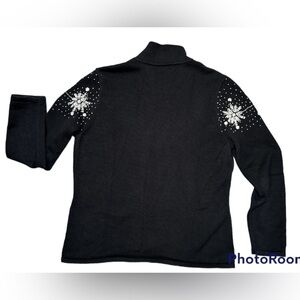 Talbots Zippered Cardigan Ribbon Embroidered Raised 3-D Snowflake Design