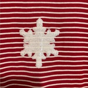 Talbots Snowflake Sequin Red White Stripe Pima Cotton Tee