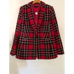 Talbots Snowstorm Plaid Blazer Jacket Women 10 Red Wool Blend Holiday Classy