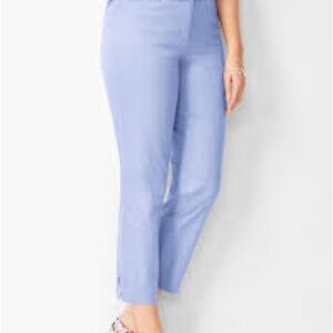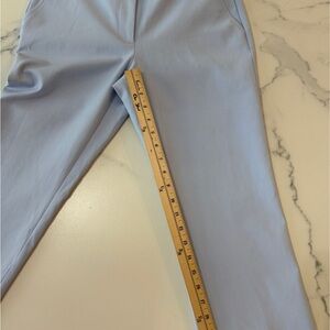 Chic and comfortable cropped pants. Soft blue hue. Ideal for versatile styling.