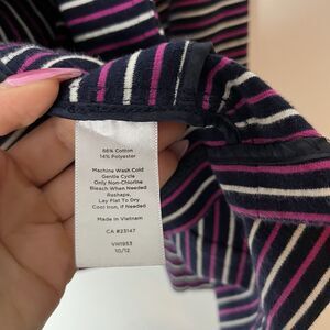 Talbots Soft Knit Navy White Fuchsia Striped Blazer Jacket Sz L
