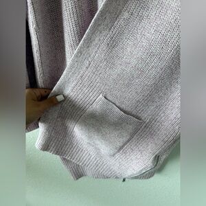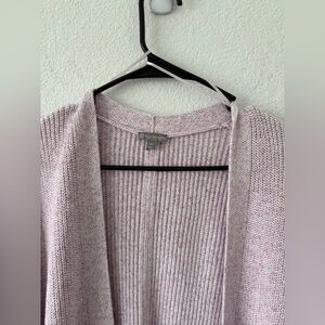 Chic and cozy open-front cardigan. Soft lavender hue. Ideal for layering.