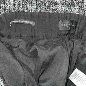 Made a 73% polyester, 25% acrylic, and 2% metallic. Features a zipper and double hook, front closure, wide waistband, front pockets, faux back pockets, and they are lined. These are a heavier, winter dress pants and very sparkly. Laying flat measures 15" in the waist, 18" in the hip, 10" rise, and 29" inseam. Be sure to check out my other Talbots listings.