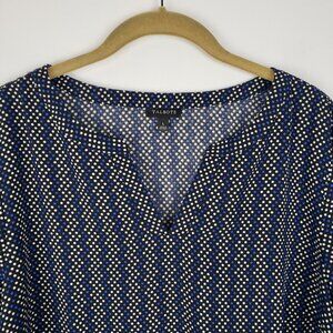 Talbots Split Neck Popover Blouse Black Blue Chevron Dot Stripe Womens Size L