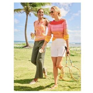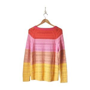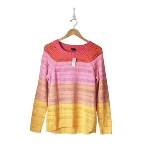 Talbots Spring Open Stitch Knit Sweater Pink Colorblock Pullover Sz M NWT