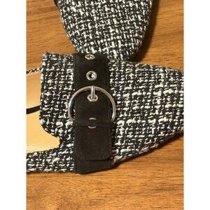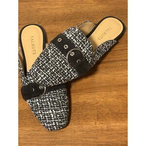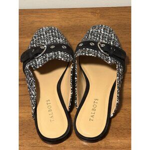 Talbots Stella Mules Buckle Boucle Tweed Black White Size 8 Fall Shoes