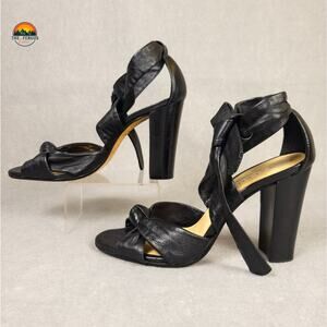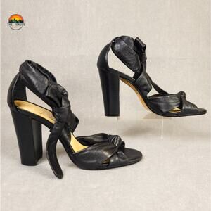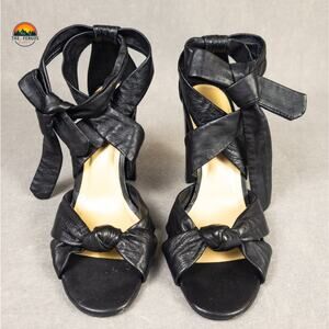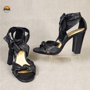 Talbots Black Leather Wrap Strap Block Heel Sandal Women's 6B