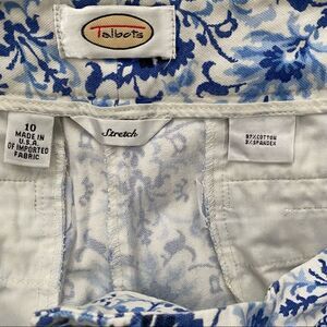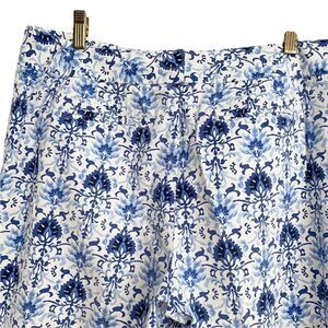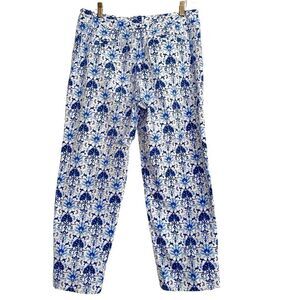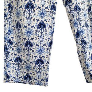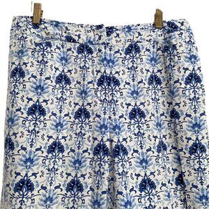 Talbots Stretch Blue + White Boho Damask Print Ankle Crop Pants Size 10