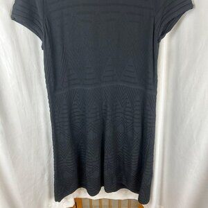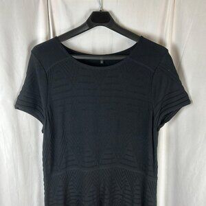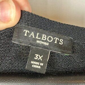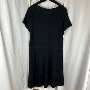 Talbots Stretch Knit A Line Dress Plus 3X Black Midi Geometric Short Sleeves LBD