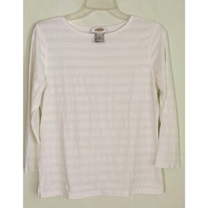 Talbots Stretch Knit Top Women's Size M White stripe 3/4 Sleeve Base Layer Tee