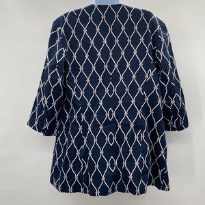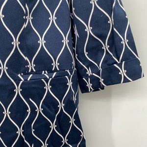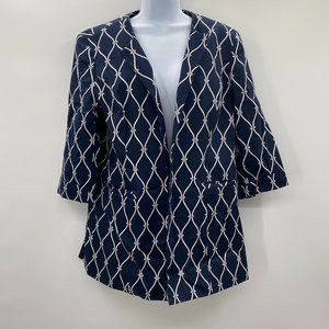 Talbots Stretch Lined Suit Jacket Navy/White Pattern Womens Size 14