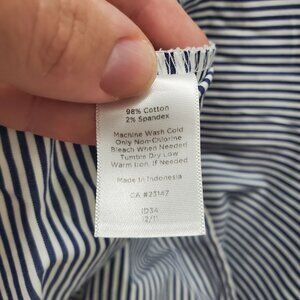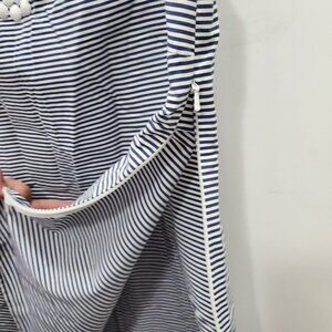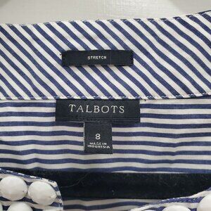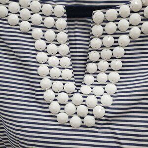 Talbots Stretch Navy White Stripe Preppy Nautical Beaded Notched V-Neck Tank 8