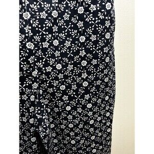Talbots Stretch Pants 14P Navy White Floral Print Cropped Retro Career Business
