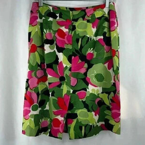 Talbots Stretch Silk/Cotton Blend Skirt Floral Colorful Print Knee Length Size 8