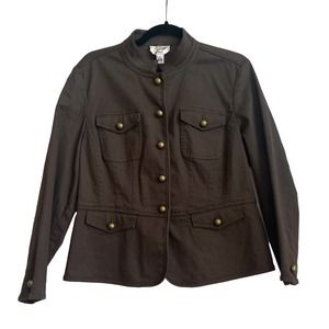 Talbots Stretch Size 10 Mocha Brown Lightweight Military Style Jacket