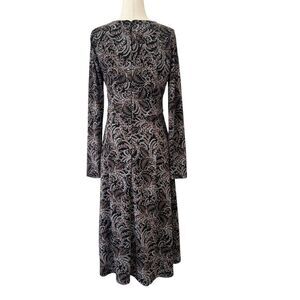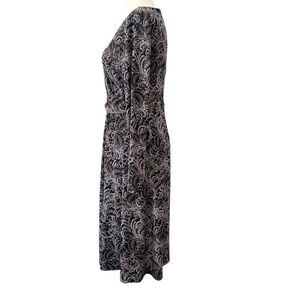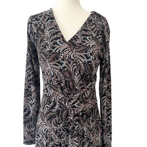 Talbots StretchyV Neck Long Sleeve Midi Dress Black, Brown, Blue Paisley