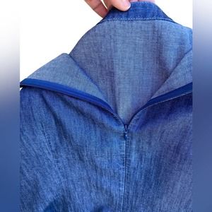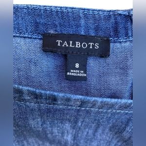 Talbots Striated Denim Shift Dress in Women's Size 8. The new denim dress. A versatile classic with an of-the-moment twist. Light enough for spring. Flattering slim shape. And buttons down the sleeves. What you need now. In gently used condition.