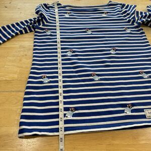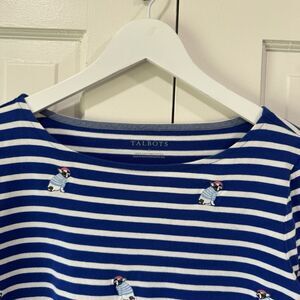 Talbots Stripe Blue Top Nautical Embroidered Frenchie 100% Cotton Preppy Small