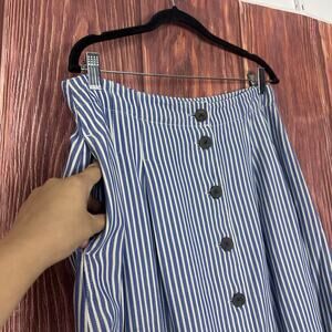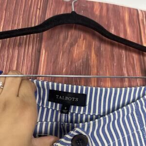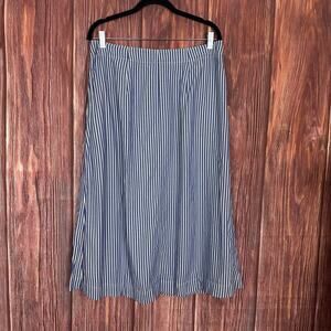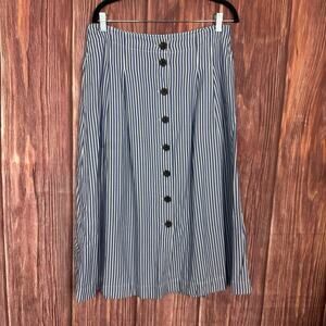 Talbots Stripe Button Front Pleated Midi A-Line Skirt in Blue White Size 8