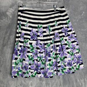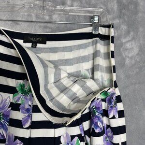 Talbots Stripe Floral Pleated Skirt Women's 12P Multi Color Spring Preppy