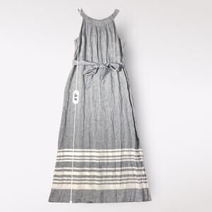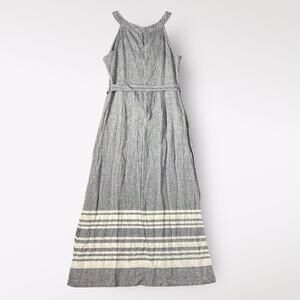Talbots Stripe Linen Chambray Belted Maxi Dress Size 10 Preppy Coastal
