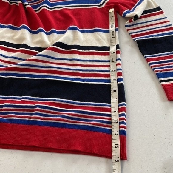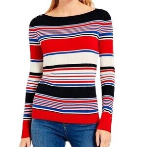 Talbots Women's Striped Nautical Bateau-Neck Sweater Blue/Red/White Sz MP