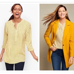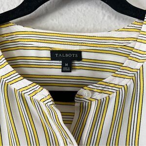 Talbots Stripe Shirt Popover Tunic Blouse Top Size Medium Long Sleeve Yellow