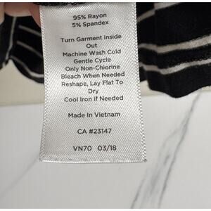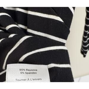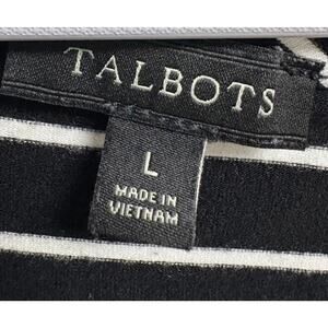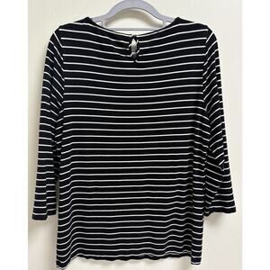 Talbots Stripe Top L Black White Stretch 3/4 Sleeve