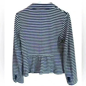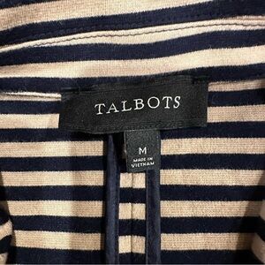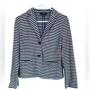 Talbots - Navy and beige striped blazer - casual to business casual with 2 front buttons and back peplum style.