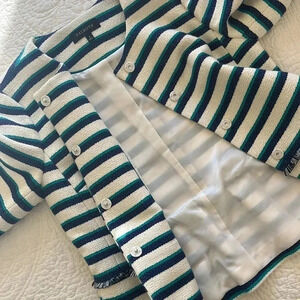 Talbots Striped Cotton Blend Textured Jacket Peplum Back Women’s 8 Cream Preppy