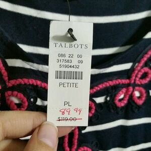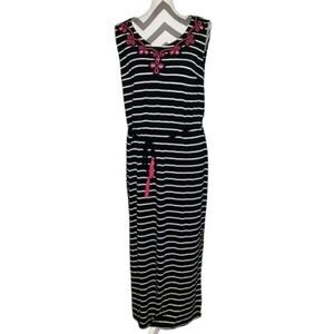 Talbots Striped Embroidered Stretchy Scoop Neck Maxi Dress Size LP Large Petite