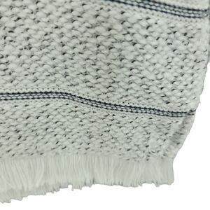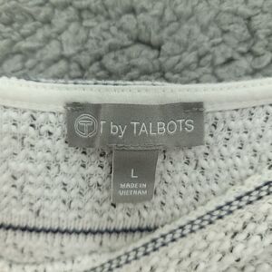Talbots striped tunic features a stylish black and white pattern with a fringed hem. Crafted from a cotton blend, it combines comfort and chic design.