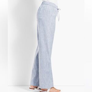 Talbots Striped Linen Cotton Blue White Wide Leg Drawstring Pants 22WP