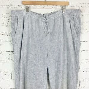EUC blue and white linen cotton blend pull on drawstring pants by Talbots in a size woman’s 22W. These say they are petite, but please note the inseam is 29” which is typically longer than petite. In excellent used condition. Please see all photos for details.