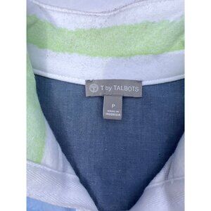 Talbots Striped Open Neck Pullover Top Sweatshirt Stripes Long Sleeve Pockets Pe