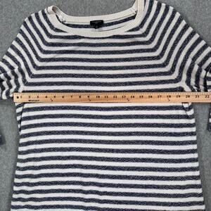 Talbots Striped Pullover Sweater Womens 1X Navy Blue/Pink 3/4 Sleeve Linen Blend