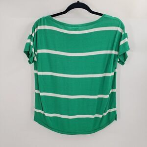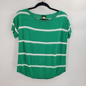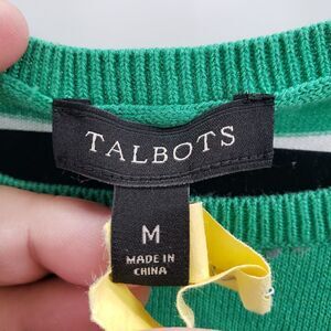 Talbots Striped Short Sleeve Sweater Womens Medium Green White Cotton Blend