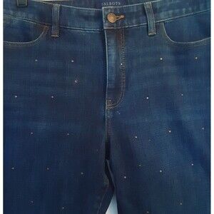 Talbots Women 's Size 12P Simply Flattering 5-Pocket Studded Dark Wash Blue Jeans Please see photos for measurements