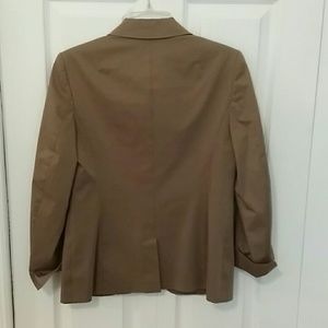 Toast Colored Poplin Jacket (size 4) and Midi Skirt (size 6). Perfect professional wear for summer and fall.