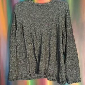 Black/white/grey speckled sweater. Long sleeve, ribbed trim around scoop neck collar & trim of sleeves/body. No holes/stains. Size 1x, 99% nylon & 1% spandex. Good condition.