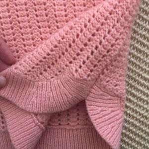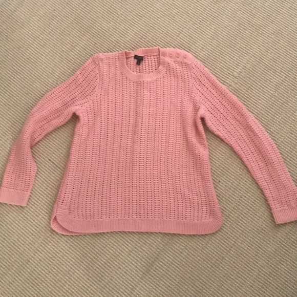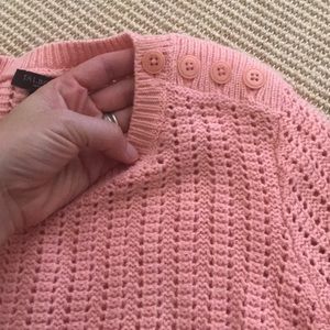 Light airy weaving and pattern, pretty coral color. Button detail on the left shoulder. Lightweight wool blend.