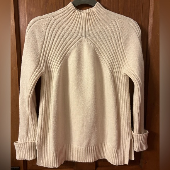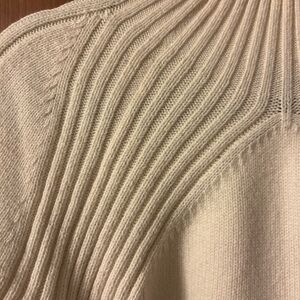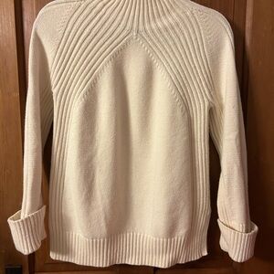 Beautiful cream colored mock turtleneck sweater in classic Talbots style! Soft, washable cotton / viscose blend. 18” inches armpit to armpit; 24” shoulder to hem.