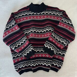 The cutest winter Talbot’s sweater. red, black, white and gray pattern with a mock neck. size 2X. Measurements pictured. 100% cotton